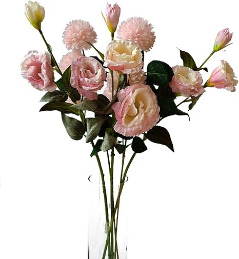 Amazon Com Suandsu 3pcs Artificial Eustoma And 2pcs Artificial Dandelion Flowers Fake Flower Silk Flower Arrangement Table Home Party Wedding Decoration Kitchen Dining