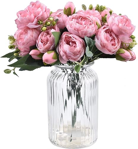 Amazon Com 4 Packs Artificial Peony Silk Flowers Fake Glorious Flower Bouquets For Wedding Party Bridal Home Decoration 5 Forks 9 Head Pink Kitchen Dining