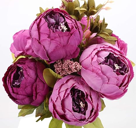 Amazon Com Duovlo Fake Flowers Vintage Artificial Peony Silk Flowers Wedding Home Decoration Pack Of 1 Purple Home Kitchen