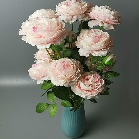 Amazon Com Blooming Paradise Artificial Fake Flowers Plants Silk Peony Flower Arrangements Wedding Bouquets Decorations Plastic Floral Table Centerpieces Home Kitchen Party Decor Festival Bar Diy Light Pink Home Kitchen