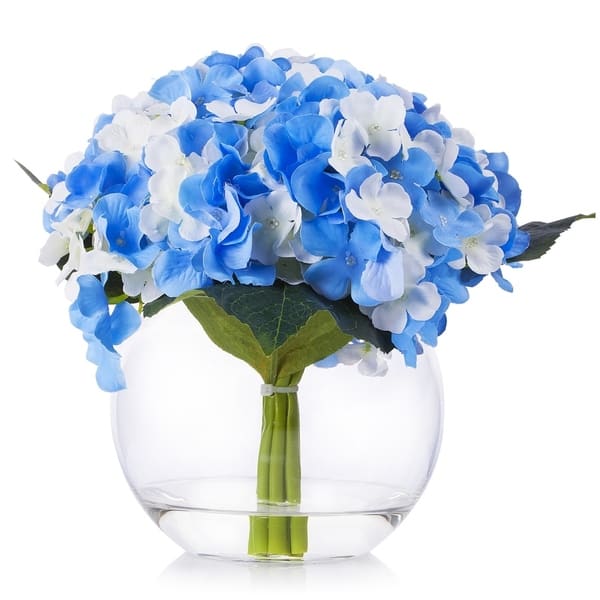 Enova Home Silk Hydrangea Flower Arrangement In Clear Glass Vase With Faux Water For Home Decoration Overstock 29808574