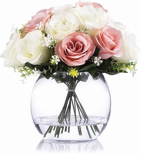 Enova Home Silk Open Rose Flower Arrangement in Round Glass Vase with Faux Water for Home Party Wedding Centerpiece Decoration Pink Brand. Choose from a wide assortment of artificial wreaths plants centerpieces arrangements garlands faux hydrangeas roses faux calla lilies that add color and elegance to any. Enova Home Rose and Hydrangea Silk Flower in Round Glass Vase with Faux Water.