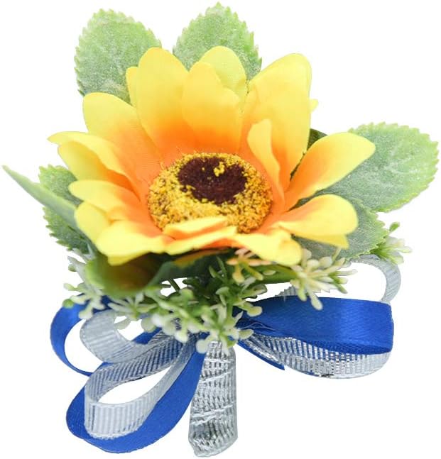 Amazon Com Caseydress Prom Corsage And Boutonniere Sunflowers Artificial Corsage Wristlet Bridesmaid Greenery Leaves Groom Men Boutonnieres Pins Wedding Home Kitchen