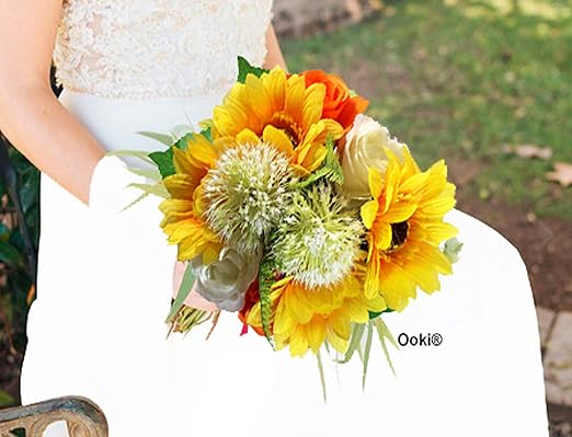 Amazon Com Fall In Love Summertime Sunflower Bouquet Orange Roses Bridal Handmade Wedding Hand Toss Artificial Silk Flower Bridesmaid Boutonniere Floral Home Kitchen