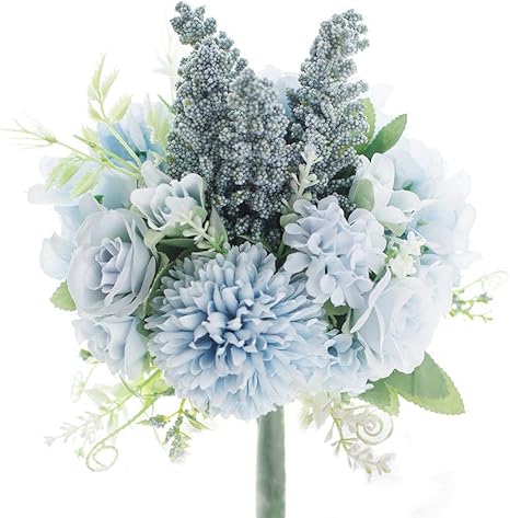 Amazon Com Artificial Flowers Fake Hydrangea Silk Rose Plastic Carnations Small Artificial Flower Arrangements Decor Bouquet For Wedding Table Centerpieces Blue Kitchen Dining