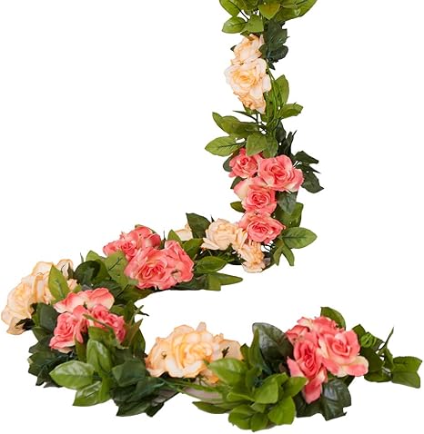 Amazon Com Fengruil Flower Vines Hanging Flower Rose Garland For Home Party And Wedding Bridal Wall Decoration 7 5 Ft 4 Pack Light Pink Kitchen Dining