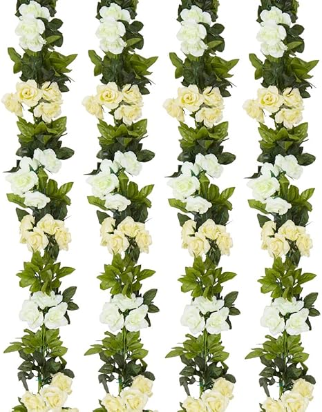 Amazon Com Fengruil 4 Pack 7 5 Ft Artificial Rose Vine Flowers Silk Garlands Hanging Ivy Flowers For Home Party Bridal Wedding Wall Decoration Champagne Home Kitchen