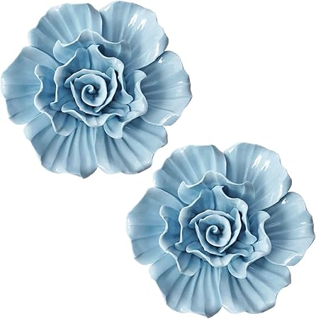 LIUCOGXI 43 Large Ceramic Flower Wall Decor Set of 2 Handmade 3D Artificial Blue Rose Hanging Sculptures for Living Room Home Hallway Bedroom Farmhouse Bathroom. Bring the beauty of nature into the comfort of your own home with this set of attractive wall decor. This piece of wall decor makes an impressive statement on wall spaces in the living room or entryway.