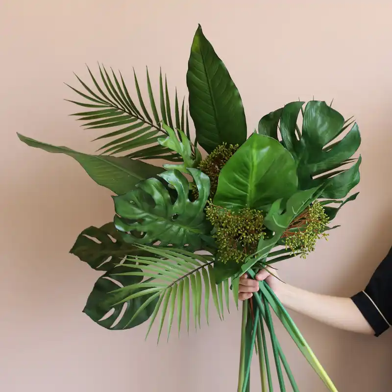 Online Shop 1pc Large Tropical Monstera Palm Tree Leaves Artificial Plants Green Plastic Leaf Fake Plants Fake Plants Decor Artificial Plants Palm Tree Leaves