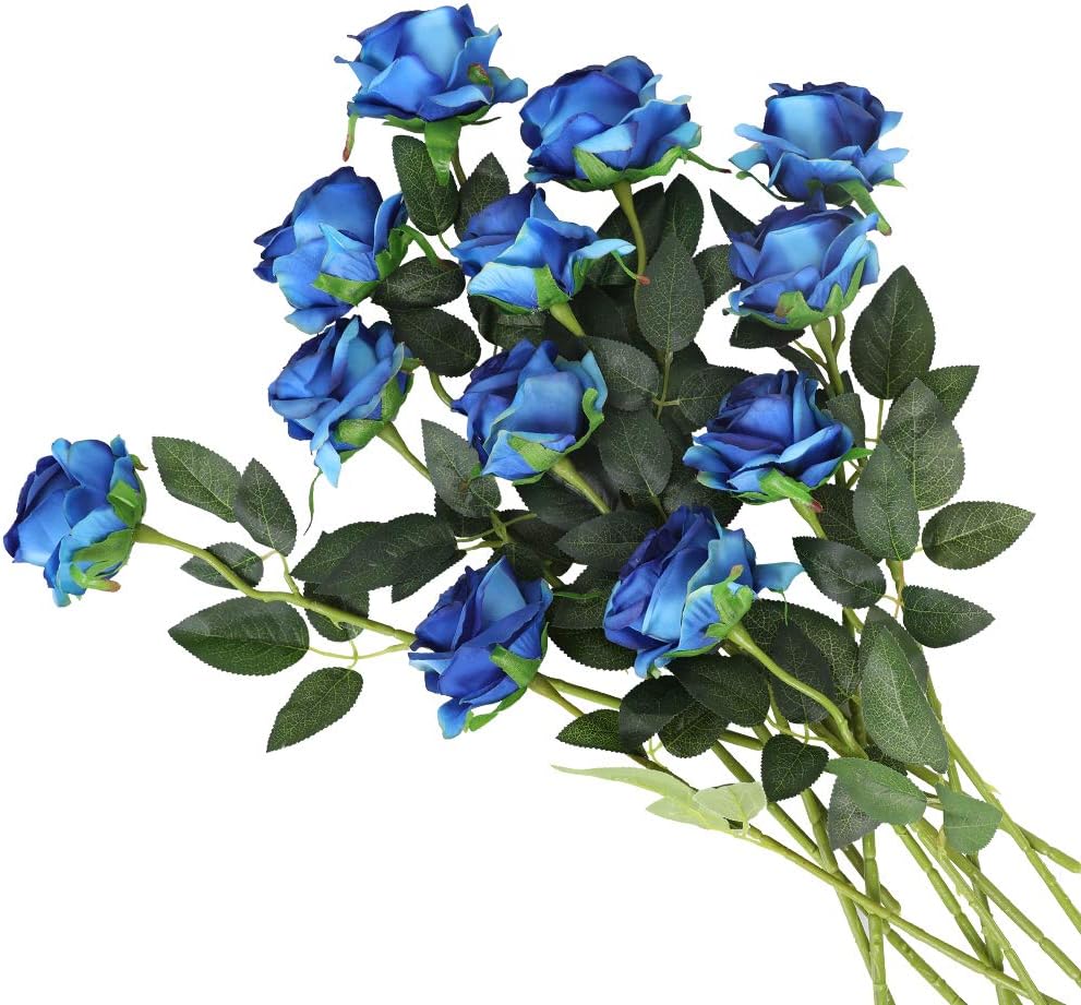 Kisflower 12pcs Roses Artificial Flowers Realistic Single Stem Flowers Silk Rose Bouquet For Wedding Party Office Home Decor Gradient Blue Home Kitchen Amazon Com