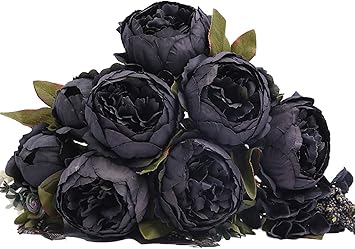 Amazon Com Kimura S Cabin Fake Peonies Faux Flower Vintage Artificial Peony Silk Flowers Arrangement Bouquets For Home Table Centerpieces Wedding Halloween Party Decoration Black Furniture Decor