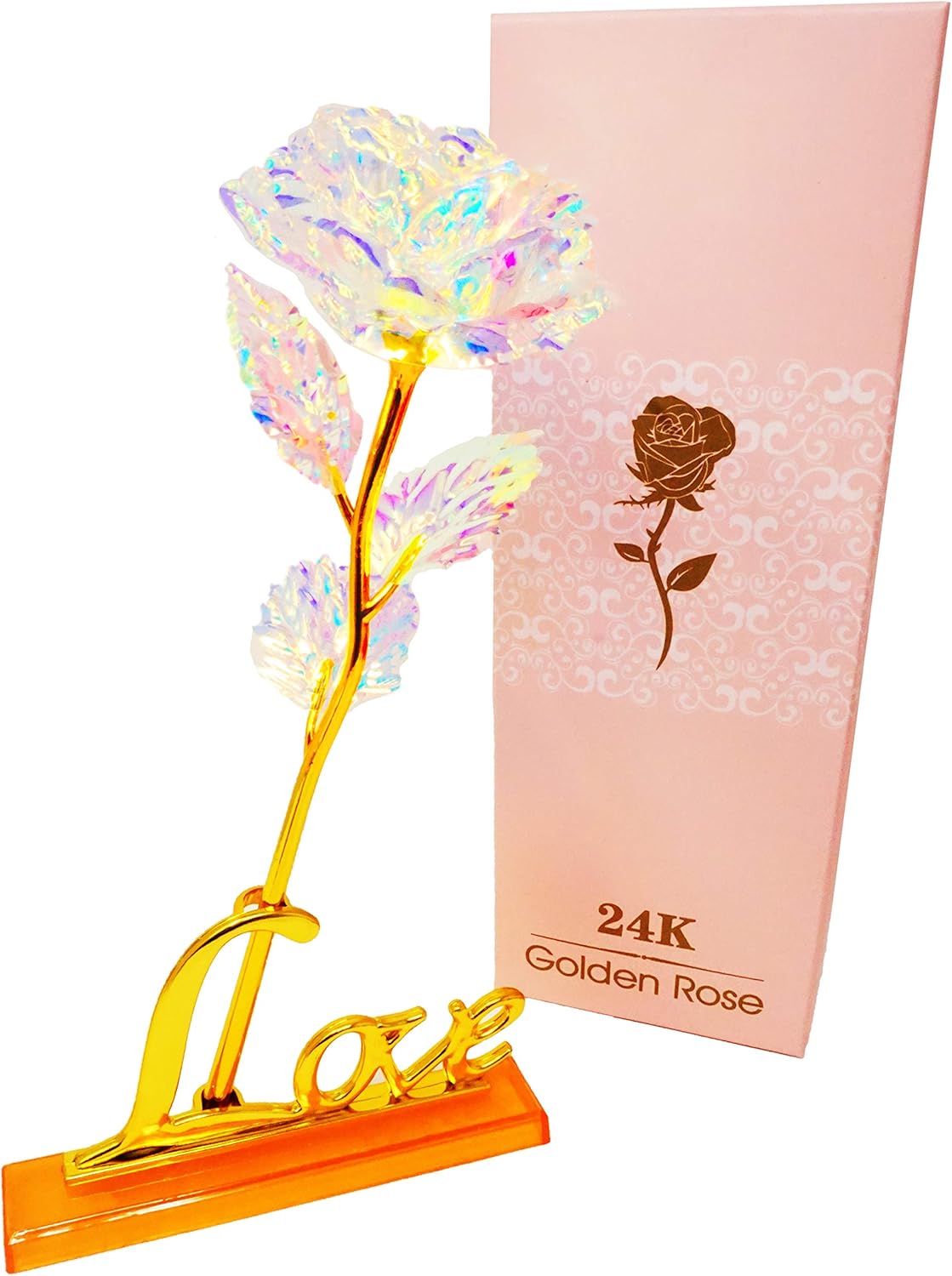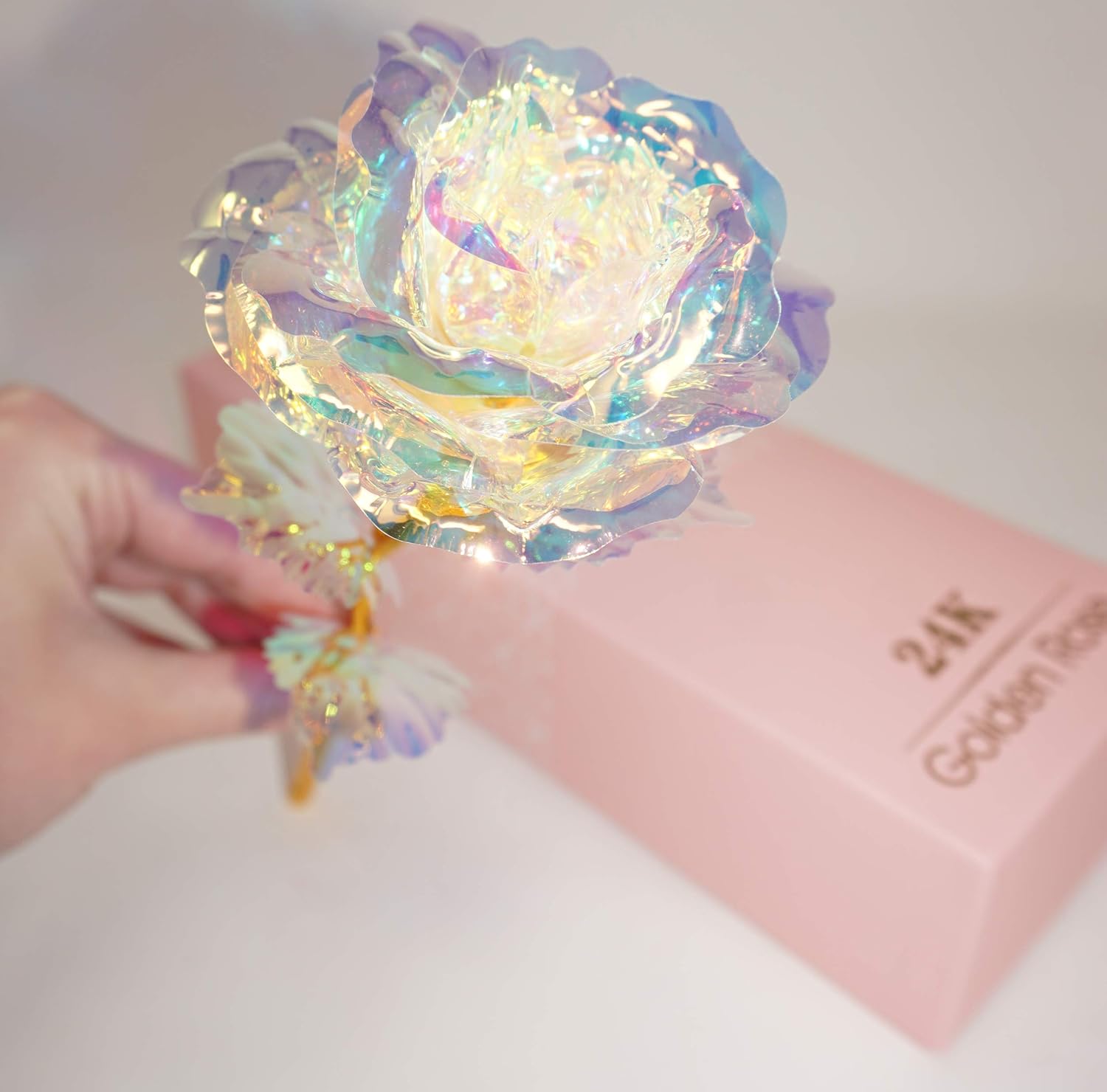 Galaxy Rose Co Galaxy Rose LED Enchanted Rose Eternal Rose Beauty and the Beast Rose domeValentines Day Anniversary Mothers Day unique romantic gift for girlfriend fiancé wife partner mom daughter Artificial flowers Iridescent holographic prismatic petals leaves rainbow of colors with 24k gold stem. 99 Colorful Artificial Flower Rose Gift Led Light String on The Colorful FlowerLasts Forever in A Glass DomeUnique Gifts for Women Christmas WeddingValentines Day Anniversary and Birthday 3471. Acrylic Rose Box Eternal Roses Preserved Flowers Gifts for Her Birthday Gift Mothers Day Gift.
