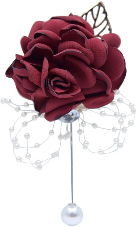 Hbedu Groom Boutonniere Flower Satin Rose Pearl Groomsmen Brooch For Wedding Flowers Party Decoration Pack Of 4 Wine Red Home Kitchen Amazon Com