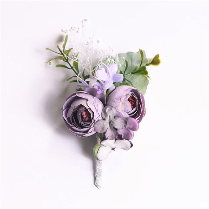 Artificial Silk Flowers Groom Boutonniere Women Bride Wrist Corsage Hand Wedding Flowers Decoration Light Purple Boutonniere Home Kitchen Amazon Com