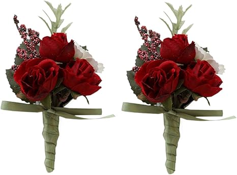 Amazon Com Campsis Wedding Boutonniere Men S Rose Buttonholes Artificial Flower Accessories For Groom Groomsman Prom Party Suit Decoration 2pcs Red Rose Beauty