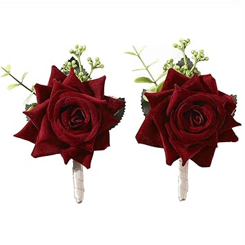 Amazon Com Campsis Wedding Corsage Flower Boutonniere Buttonholes Red Wine Flowers Groom Groomsman Best Man Wedding Flowers Accessories Prom Suit Decoration Pack Of 2 Furniture Decor
