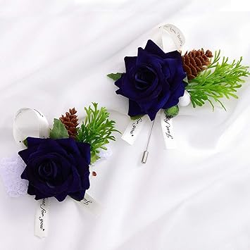 Amazon Com Campsis Wedding Wrist Corsage And Boutonniere Set Wristband Buttonholes Wedding Flowers Prom Suit Decoration For Groom Groomsman Best Man And Girl Brides Dark Blue Beauty