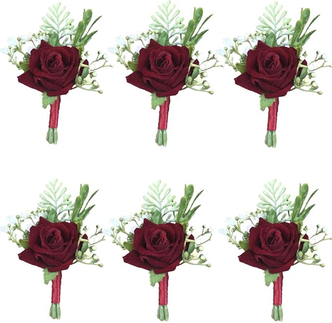 Weddingbobdiy 6pieces Lot Groom Boutonniere Man Women Bride Wrist Corsage Artificial Wedding Flowers Party Decoration Wine Red Boutonniere Kitchen Dining Amazon Com
