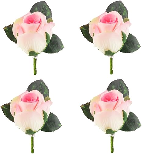 Amazon Com Set Of 4 Rose Boutonniere With Pin For Men Wedding Prom Party Corsage Silk Flower For Groom Best Man Father Home Kitchen