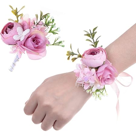 Amazon Com Jaoswish 2pcs Flower Wrist Corsage Boutonniere Set Artificial Peony Rose Corsage Set Handmade Bride Wristband Men Boutonniere For Groom Wedding Party Prom Suit Home Kitchen
