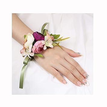 Amazon Com Bodarind Wrist Corsages With Elastic Band For Bride Bridesmaid Artificial Flower On Wrist For Wedding Prom Party Home Kitchen