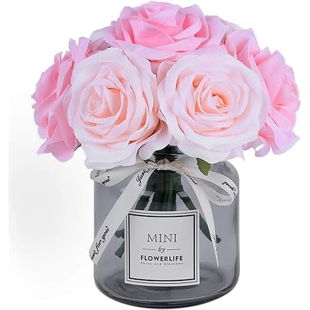 Amazon Com Artificial Roses With Glass Vase Rose Bouquet And Glass Bottle Set Suitable For Living Room Dining Table Office Wedding Hotel Banquet Home Decoration Pink Rose Red Kitchen Dining