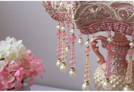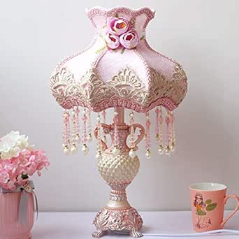 Litfad Korean Garden Vase Shaped Table Lamp Single Bulb Fabric Nightstand Light Romantic Princess Room Bedside Lamp In Pink With Beaded Fringe Trim For Bedroom Girls Room Hotel Amazon Com