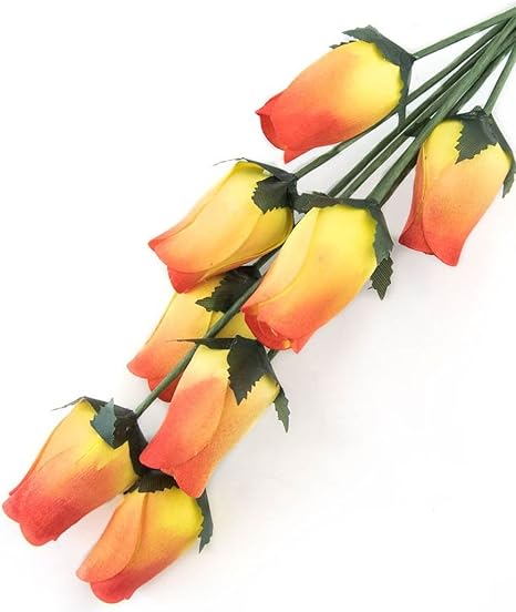 Amazon Com Yellow Roses With Red Tips Bunch Of 8 Closed Bud Wooden Roses For Crafts Custom Bouquets And Other Diy Projects Choose Form Over 50 Colors Home Kitchen