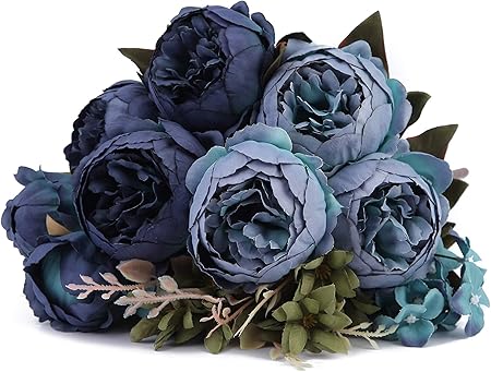 Amazon Com Blooming Paradise Artificial Fake Flowers Plants Silk Peony Flower Arrangements Wedding Bouquets Decorations Plastic Floral Table Centerpieces Home Kitchen Party Decor Festival Bar Diy Acid Blue Home Kitchen