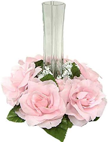 Amazon Com Artificial Flowers Collection Candle Ring Silk Roses Wedding Party Centerpieces Unity Candle Color Pink Home Kitchen