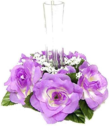 Amazon Com Artificial Flowers Collection Candle Ring Silk Roses Wedding Party Centerpieces Unity Candle Color Purple Home Kitchen