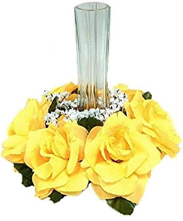 Amazon Com Artificial Flowers Collection 6 Candle Rings Yellow Silk Roses Wedding Flower Party Centerpieces Unity Candle Home Kitchen