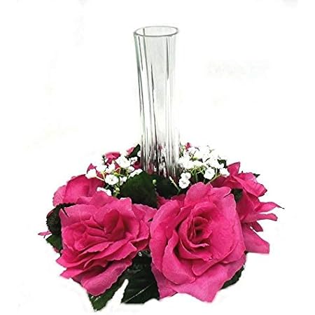 Amazon Com Candle Ring Fuchsia Pink Wedding Party Unity Centerpieces Silk Roses Flowers Home Kitchen