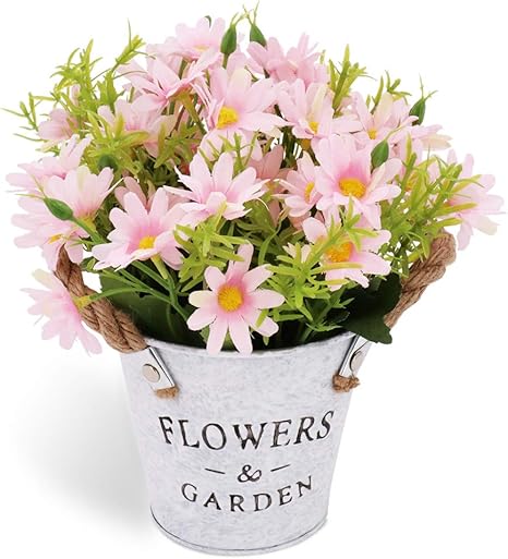 Amazon Com Casmon Potted Artificial Daisies Flowers In Metal Pot Fake Silk Bonsai Plants With Vase For Indoor Bedroom Home Decor Wedding Arrangements Office Desk Windowsill Decorations Pink Kitchen Dining