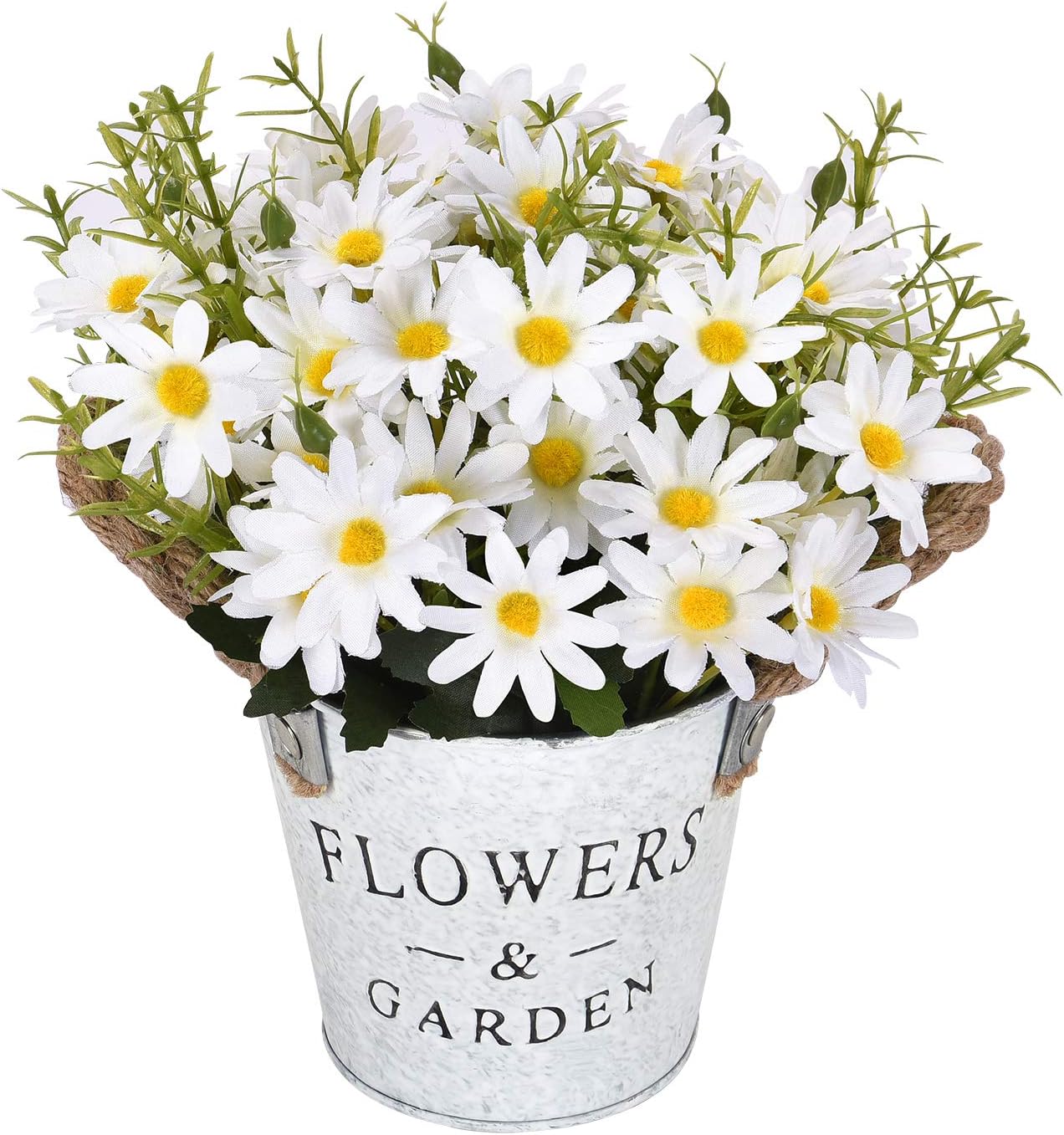 Amazon Com Artificial Daisy Pot Silky Artificial Daisy Metal Pot Bonsai Artificial Flowers In Metal Potted Artificial Daisy Bouquet With Vase For Wedding Party Stage Centerpieces Windowsill Decor Furniture Decor