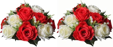 Amazon Com Nuptio Pcs Of 2 Fake Flower Ball Arrangement Bouquet 15 Heads Plastic Roses With Base Suitable For Our Store S Wedding Centerpiece Flower Rack For Parties Valentine S Day Home Decor Red White