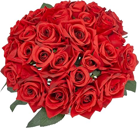 Amazon Com Huryfox 27 Pcs Of Artificial Red Roses Fake Flower In Bulk With Stems For Home Decor Indoor Faux Greenery Decor For Bedroom Decorations Valentine Gifts For Women Wedding Bouquets Kitchen
