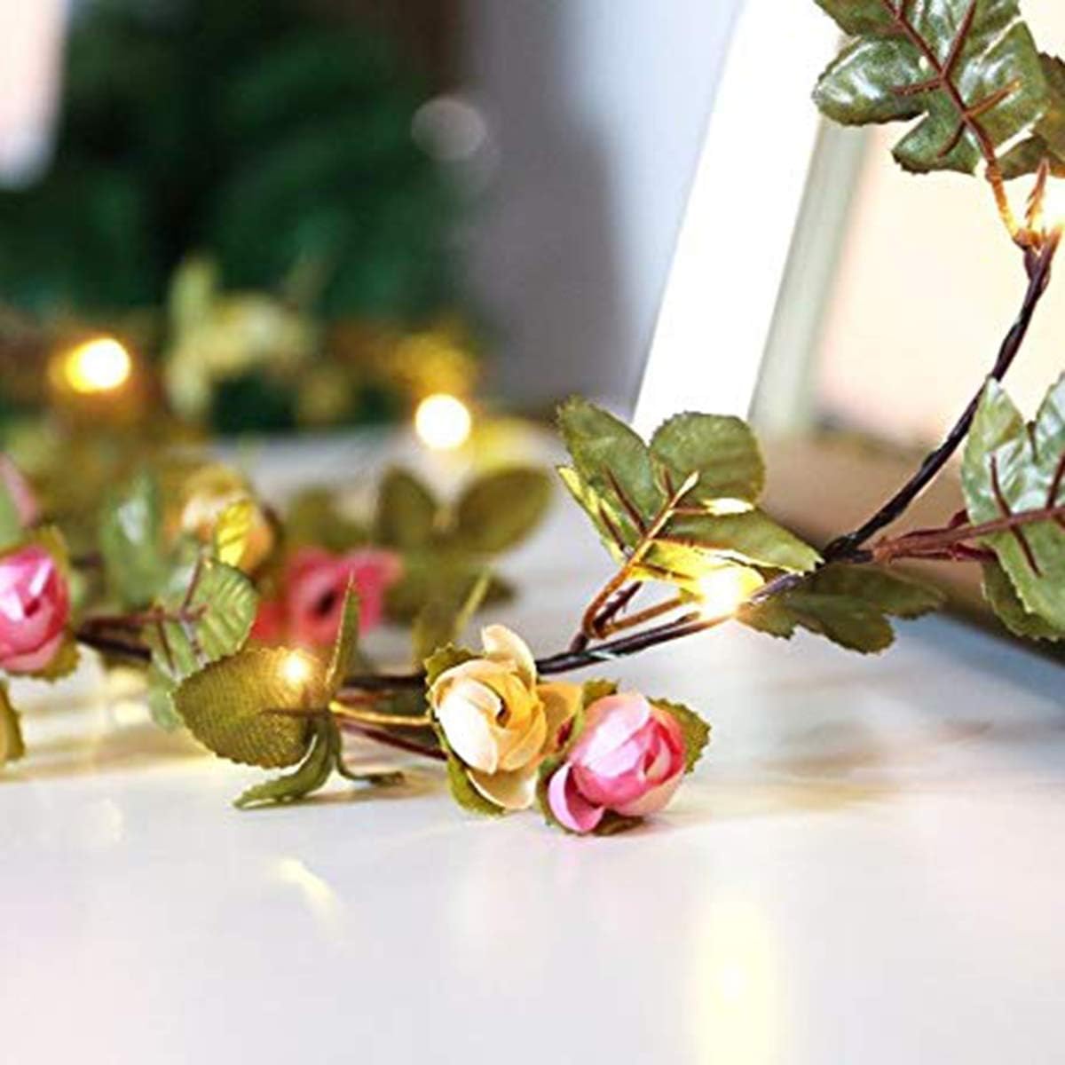Soft and smooth foam texture of realistic looking rose buds accented with delicate lace is coupled with bendable green leafy wired stem to make these garland lights look mystically lifelike and magical. Rose Flower Leaf Garland String Lights 24M LED Battery Operated Fairy Lights DIY Weddings Parties Christmas Home Decorations. 20 LED 72ft Artificial Flower Rose Vine String Lights Battery Powered Garland Plant Fairy Light Wedding Party Garden Decoration Craft Art Price.