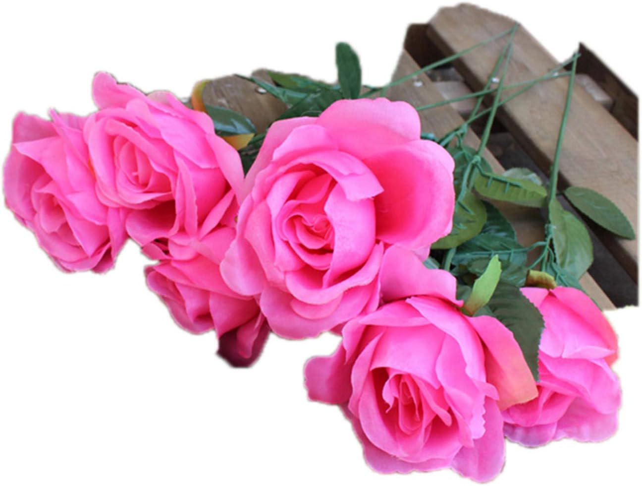 Artificial Flowers 5pcs Artificial Flowers Silk Rose Long Branch Bouquet (Color : Rose Red)