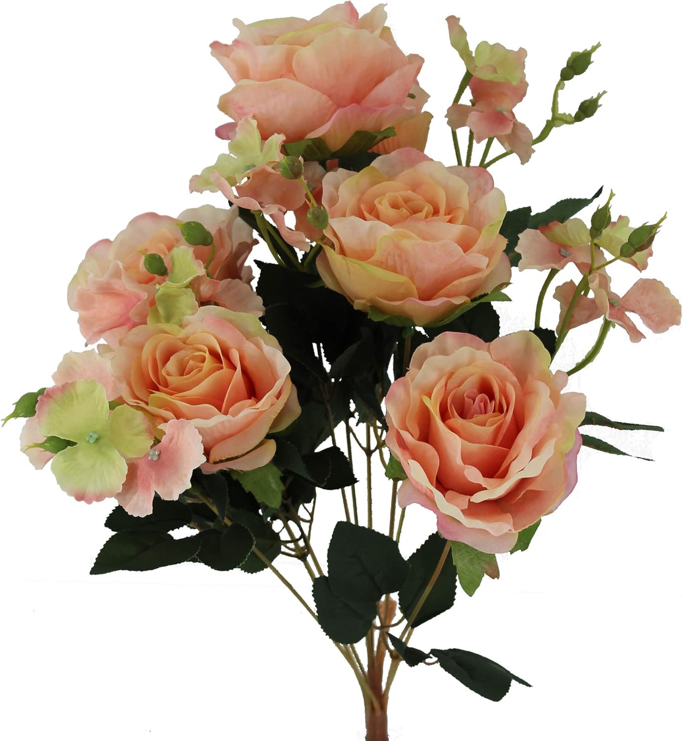 Amazon Com Bundles Rose Hydrangea Flower Bouquet Artificial Silk Flower Artificial Flower French Rose Fake For Bridal Bouquet Wedding Living Room Table Home Garden Decoration Set Of 4 Beige Pink Kitchen Dining