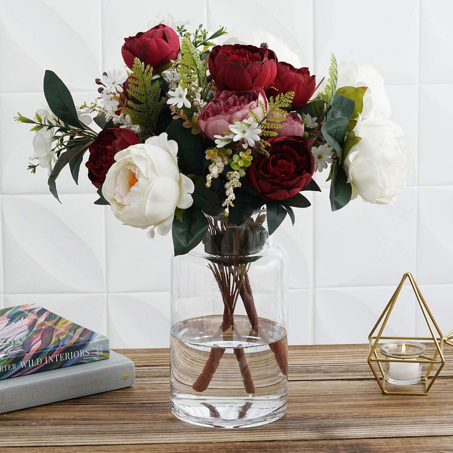 2 Bush Burgundy Peony Rose Bud And Hydrangea Real Touch Artificial Silk Peonies Bouquet Silk Peonies Bouquet Silk Flower Bouquets Silk Flower Wedding Bouquet