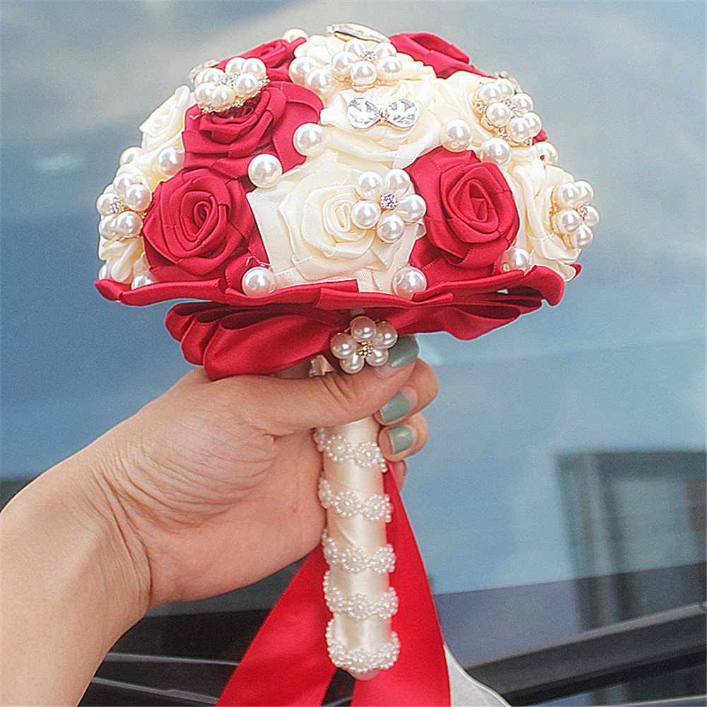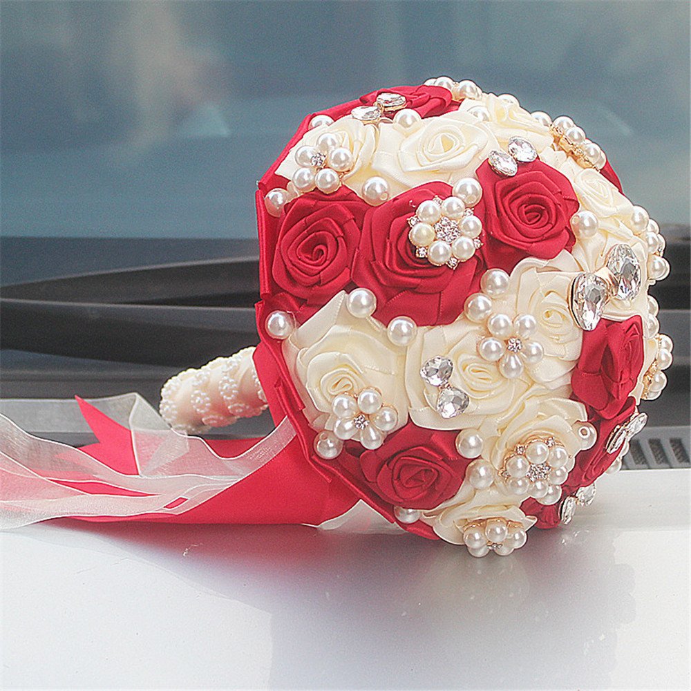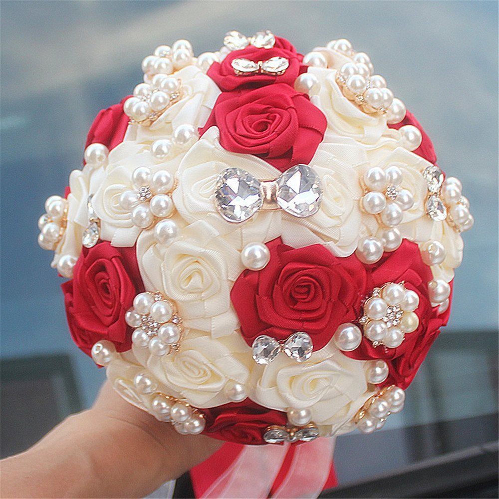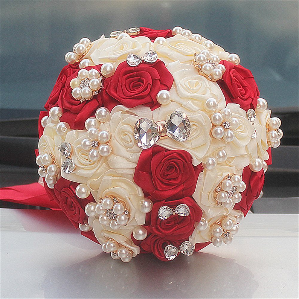 Fystore Hand Made Silk Rose Rhinestone Brooch Wedding Bouquets Customization Pearls Bride Bridesmaids Holding Flowers 17cm Red Ivory Buy Online In Guyana At Guyana Desertcart Com Productid 47564824