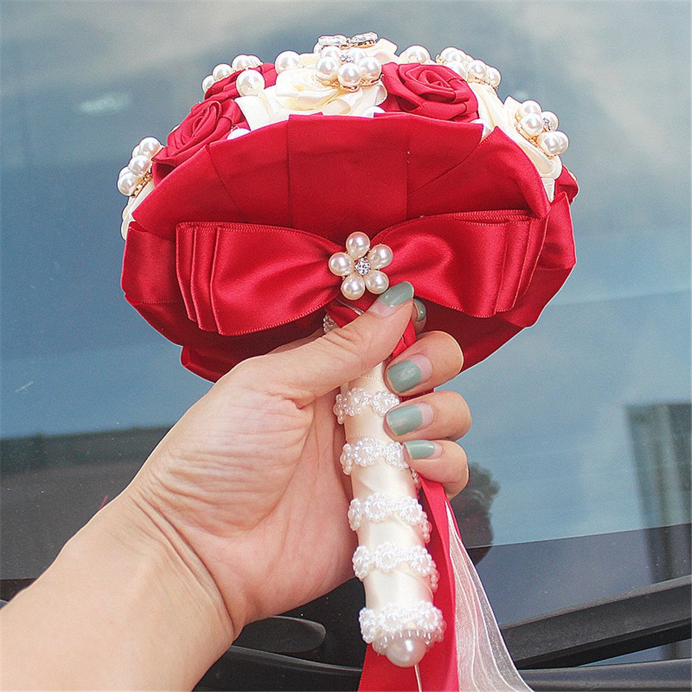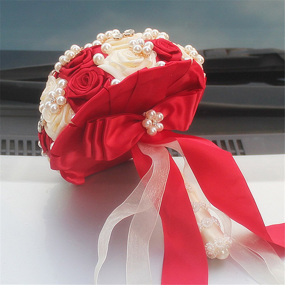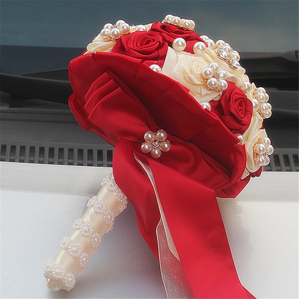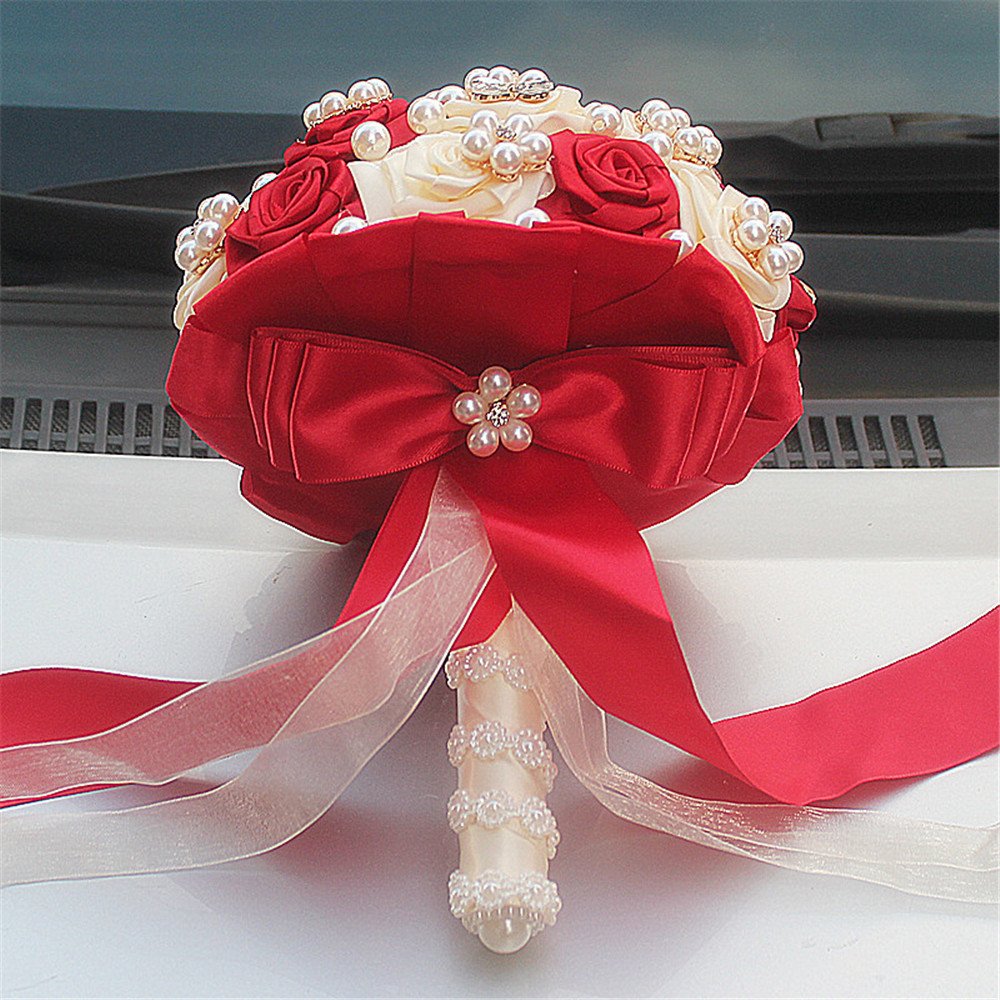 Fystore Hand Made Silk Rose Rhinestone Brooch Wedding Bouquets Customization Pearls Bride Bridesmaids Holding Flowers 17cm Red Ivory Buy Online In Guyana At Guyana Desertcart Com Productid 47564824