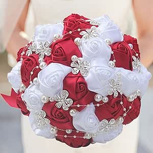 S Ssoy Customizable Romantic Wedding Bouquets Silk Flowers Bridal Holding Roses Bride Bridesmaid Brooch Bouquet With Pearl Diamond Crystal Ribbon Valentine S Day Free Corsage Wine Red White Home Kitchen Amazon Com