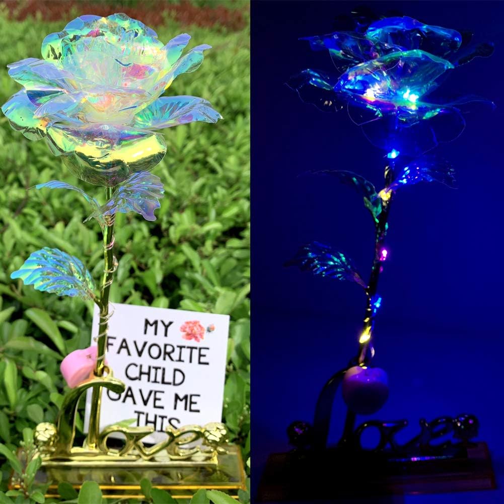 Amazon Com 24k Luminous Rose Artificial Led Light Flower With Love Stand Greeting Card In Box Gift Present Idea For Her For Mother S Day Anniversary Wedding Ceremony Birthday Colorful Furniture Decor