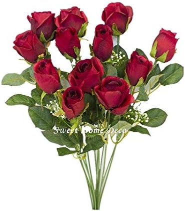 Amazon Com Sweet Home Deco 18 Silk Rose Bud Artificial Flower Bush 12 Stems 12 Flowers Wedding Home Decoration Red Kitchen Dining