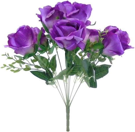 Amazon Com Half Open Rose Buds Bush 9 Artificial Silk Flowers 18 Bouquet 1923 Purple Home Kitchen