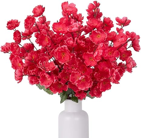 Amazon Com Yiliyajia Artificial Flowers Fake Silk Peach Blossom Bouquets Flowers Arrangement Bunch For Home Office Table Wedding Decoration 4pcs Rose Red Home Kitchen