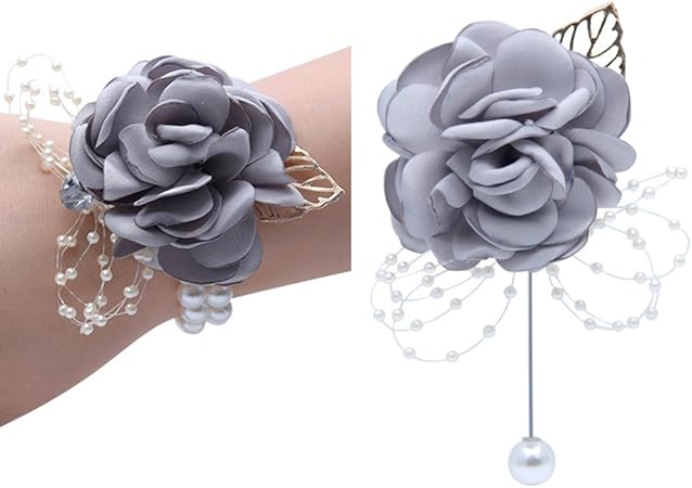 Amazon Com Florashop Grey Satin Rose Wrist Corsage Boutonniere Wedding Bridal Bridesmaid Wrist Corsage Wristband And Men S Groom Bridegroom Boutonniere For Wedding Prom Party Homecoming Arts Crafts Sewing