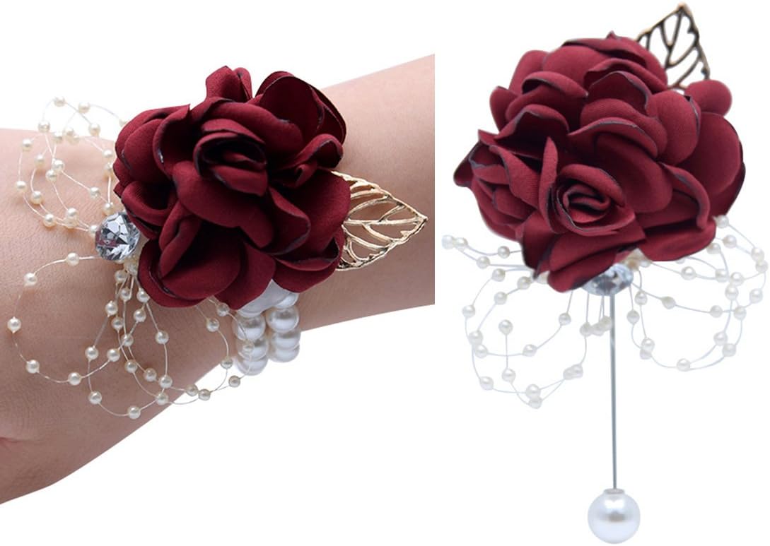 Amazon Com Florashop Dark Red Satin Rose Wrist Corsage Boutonniere Wedding Bridal Bridesmaid Wrist Corsage Wristband And Men S Groom Bridegroom Boutonniere For Wedding Prom Party Homecoming Arts Crafts Sewing